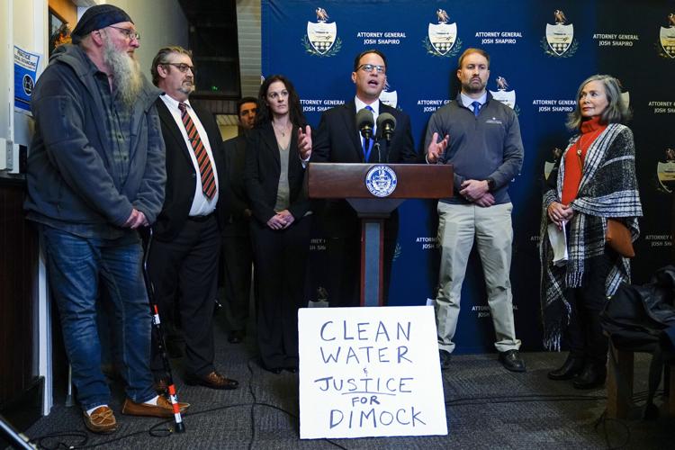 AP Photo Former Pennsylvania Attorney General Josh Shapiro, center, speaks with members of the media during a news conference at the Susquehanna County District Courthouse in Montrose, Pa., in 2022. Shapiro became Pennsylvania’s 48th governor on Jan. 17, 2023.