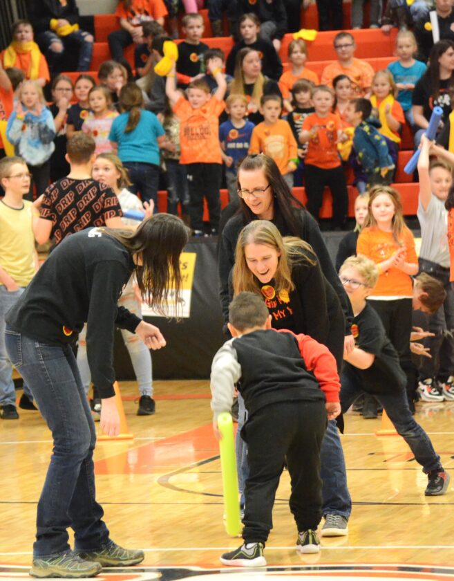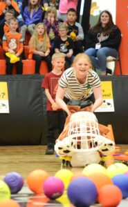 Physical Education Teacher Christy Valentine led the students (and some of the staff) in a number of competitions – from Hungry Hippos to relay races to the popular dance party.