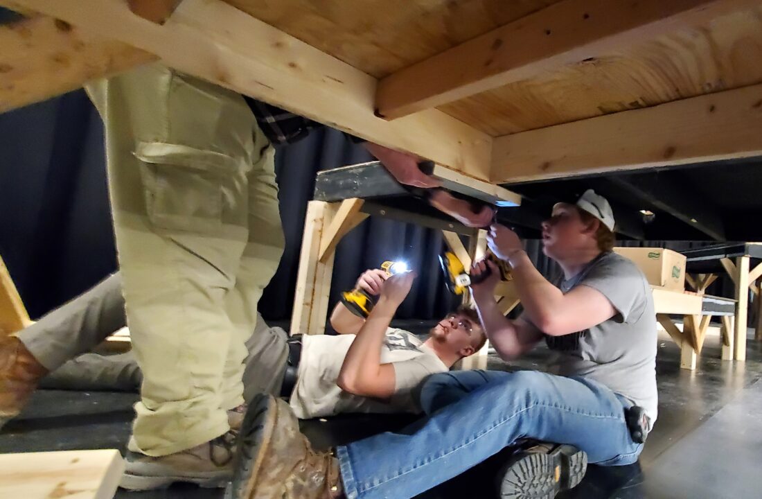 Students from the Warren County Career Center Building Construction Occupations (BCO) class are building parts of the sets.