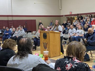 Times Observer photos by Josh Cotton Kelly Sullivan addressed the Warren County School District board of directors during Wednesday’s public engagement session at Central Office in Russell regarding the district’s master facilities plan.