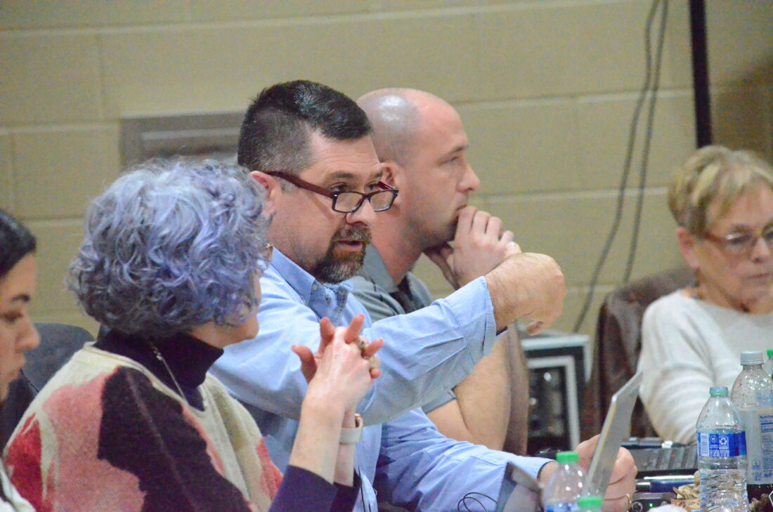 Times Observer photo by Josh Cotton School board member Joe Colosimo speaks during Wednesday’s session. The board was asked to identify the criteria that would be used to evaluate options but declined to evaluate any of the options on the table during the meeting.