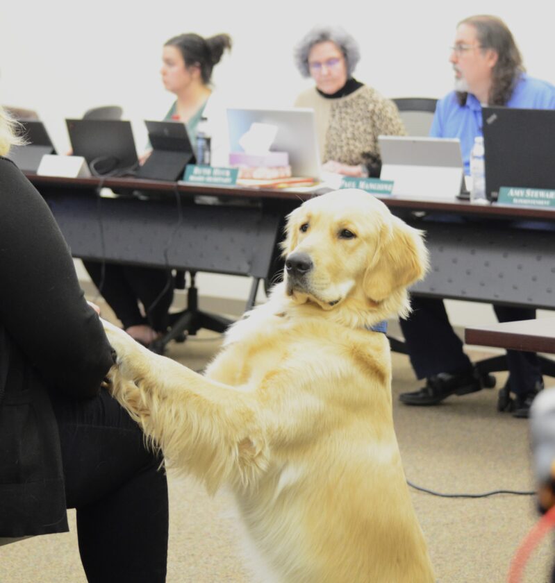 “Therapy dogs help create a comfortable, happy, and safe environment,” Mead said in a previous introduction of the concept. “Studies show that children’s reading abilities improve with the use of therapy dogs. Changes in attitudes toward reading, reading skill levels, schoolwork, attitudes toward homework, attendance, and changes in self-esteem and self-confidence can be seen by involving a therapy dog in a school. Therapy dogs have also been known to decrease levels of anxiety.”