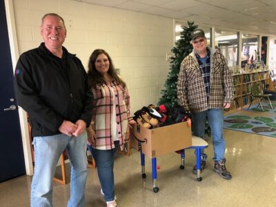 Guidance counselors have a big job of getting all the boots and winter wear to the students once they are delivered to the schools. A boot delivery crew of Dan Leasure, Dewey Anderson and Dave Moore did a great job of making sure the boots were delivered to each school.
