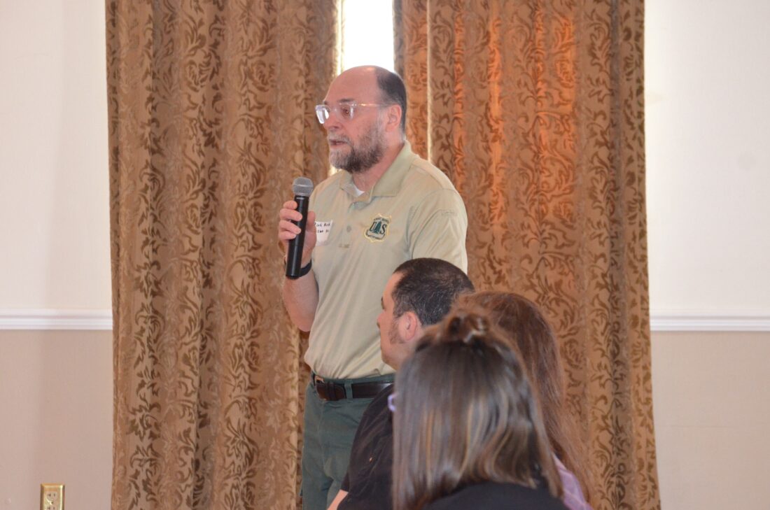 Times Observer photo by Josh Cotton ANF Bradford District Ranger Rich Hatfield speaks as part of a panel discussion during Tuesday’s outdoor recreation event at the Conewango Club.