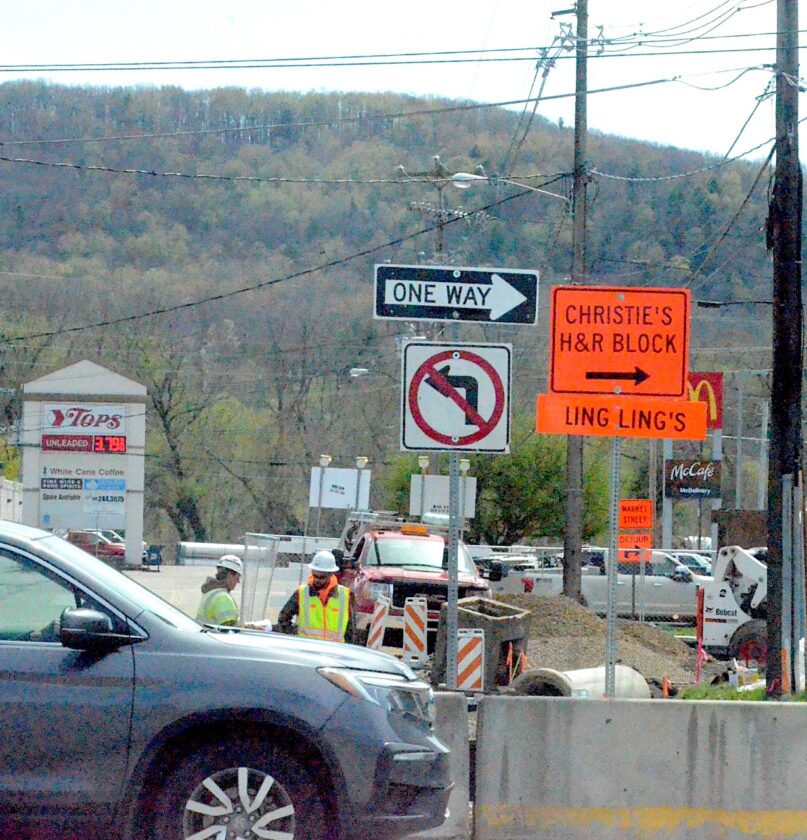 Times Observer photo by Josh Cotton Signage like this — pointing out how to get to businesses impacted by roundabout construction at the intersection of Pennsylvania Avenue and Market Street — is one effort to alleviate impacts from construction. The city’s Planning Commission discussed other options specifically related to parking during a Wednesday morning meeting.