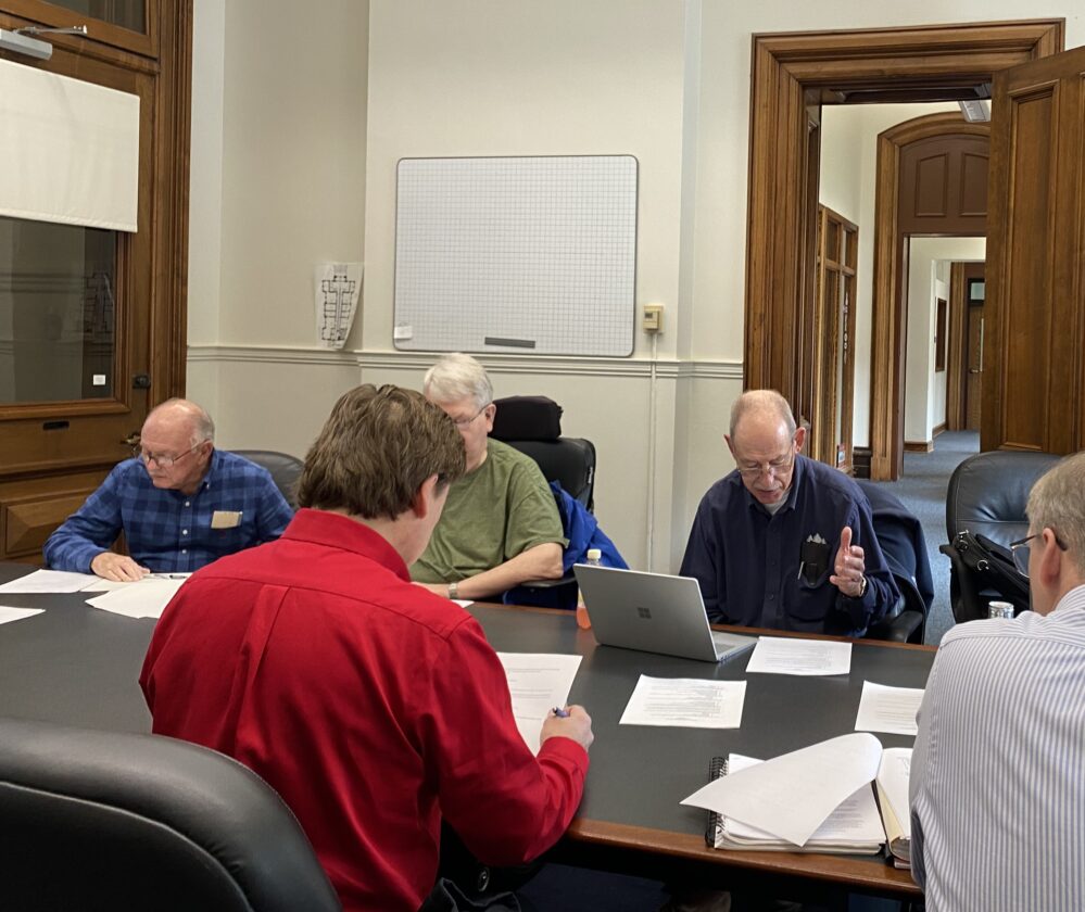 Times Observer photo by Josh Cotton Members of the county Planning Commission’s short-term rental task force, from left, Jeff Zariczny, Gary Wareham, Gary Olson and Arthur Stewart, met on Tuesday to discuss a proposal presented to the Commission last month that received scathing public feedback.