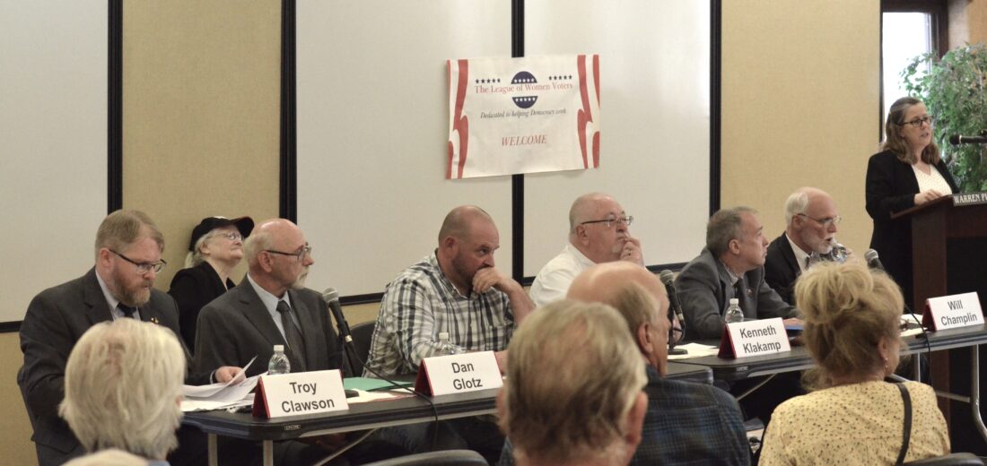 Six of the seven candidates participated in the forum. That included the sole Democrat, Dan Glotz, as well as Republicans Troy Clawson, Joe Perrin, Ken Klakamp, Jeff Eschborn and Will Champlin.