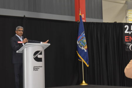 Padmanabhan spoke highly of the Jamestown Engine Plant employees during his remarks Monday, holding up a book that dictates how Cummins employees and management should deal with each other every day. He also called the Jamestown Engine Plant the most flexible workforce of any of the company’s network of factories.