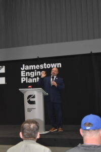 “I’d like to thank you all again for joining in this milestone accomplishment for the Cummins Jamestown Engine Plant,” Dibble said. “A key foundation of JEP is people working together toward excellence. As I look around the people in front of me there is no better display of the people that surround us each day to make this plant successful. To our 1,500-plus employees, contractors, engineers, team leaders, I’d like to thank you for your dedication perseverance to accomplish 2.5 million engines. Your hard work flexibility and ability to rise to challenges are what keeps this plant thriving.”