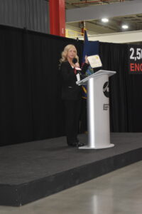 Anna Dibble, Cummins Jamestown Engine Plant manager, noted the history of engine building in the Busti facility in in 1976 before closing her remarks speaking to Cummins employees who took a brief break Monday to commemorate milestone engine before hearing encouraging words about the company’s future.