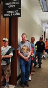 - Times Observer photo by Brian Ferry Hunters wait in line Monday morning outside the Warren County Treasurer’s Office as the website that handles hunting licensing is unavailable. Some reportedly stood in line for more than two hours.
