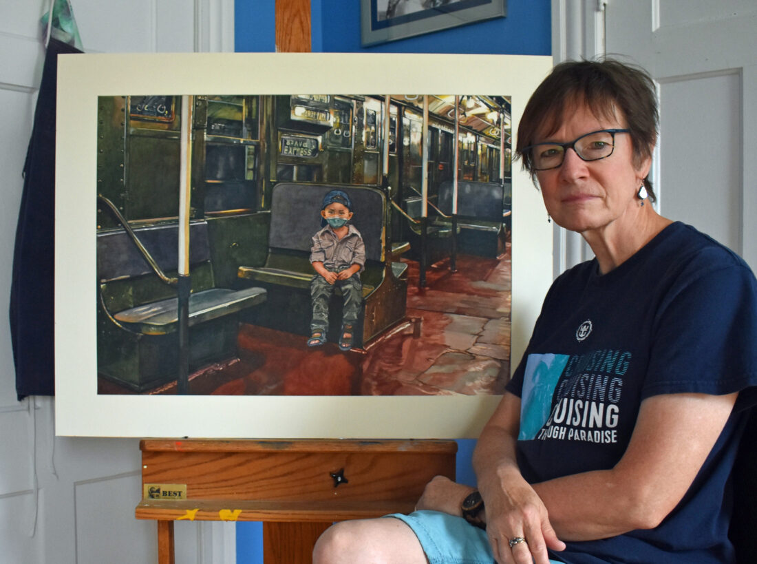 Valerie Patterson is pictured with one of her paintings that will be on exhibit at the Crary Art Gallery.