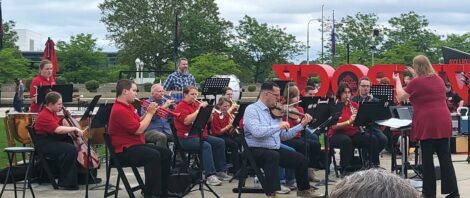About 25 members of the Warren County Youth Orchestra, with youth from Warren, McKean, Chautauqua, and Cattaraugus counties, and six adult performing mentor/instructors, were among the Conservatory students and leaders who played a Summer Showcase outside the iconic Rock Hall.