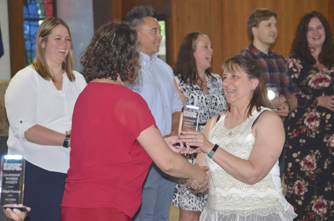 File photo Monica Prowitt, right, is presented with a commemorative crystal as a 2022 graduate of Leadership Warren County at the Interfaith Chapel on the Warren State Hospital Grounds.
