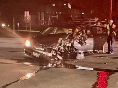 A two-vehicle accident stopped traffic at about 7:45 p.m. Monday near 2725 Market St. in Warren, Pa. Emergency crews blocked southbound lanes and the northbound turning lane into the Warren Commons shopping plaza. One vehicle sustained major front-end damage while the second vehicle was flipped on its side. There were no other details were available at press time.