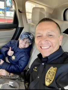 Photo submitted to the Times Observer Joshua Eastman, 10, is pictured with Raymond Garivey, a police chief in Texas, who helped spread the word of Joshua’s love for police and department patches. Joshua was diagnosed with high-risk B Cell Acute Lymphoblastic Leukemia in May 2021.