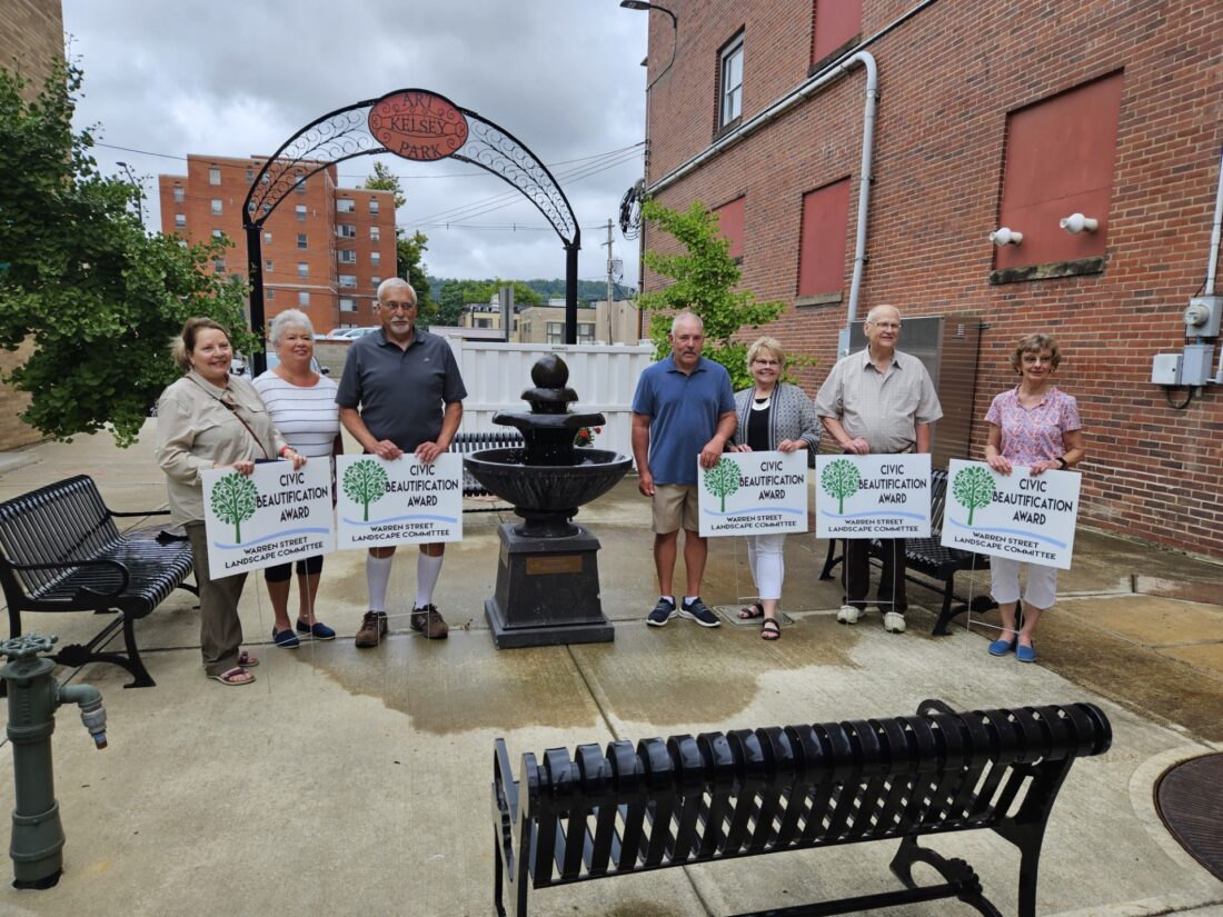 Photo by Jacob Perryman Warren City Beautification Award winners are pictured at Art Kelsey Park on Liberty Street Thursday. Winner included BetterHelp for the business award; Good News Community Church for the non-profit award; and Christine Allen, Mr. and Mrs. Richard Lyle and Mr. and Mrs. Joseph Muscaro for the residential awards.