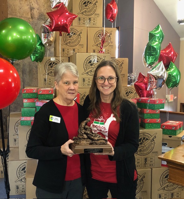 Pleasant Community Church has been recognized for 20 years of service as a central drop off location for Operation Christmas Child.