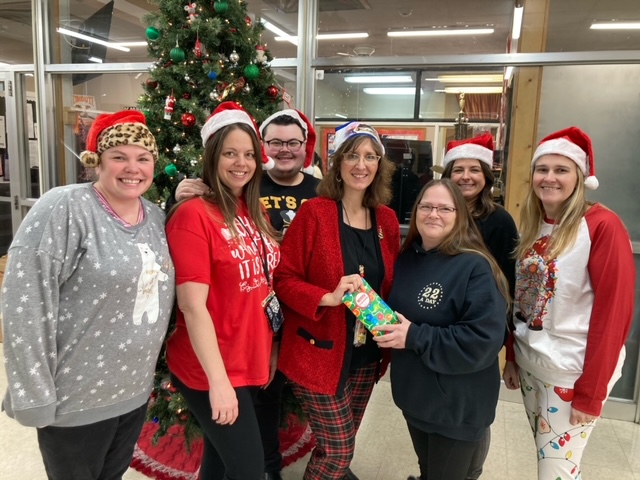 Photo provided to the Times Observer The Ugly Sweater Christmas Bar Hop raised over $2,000 for the Angel Tree Program at both Tidioute Community Charter School and West Forest. In the photo are, from left, TAP/Angel Tree Committee Sara Robinson, Kiev Hargest, David Newcombe, Beth Bonner, Michelle Buccardo and Christy Weaver with Jessica Toomey from the Ugly Sweater Christmas Bar Hop.