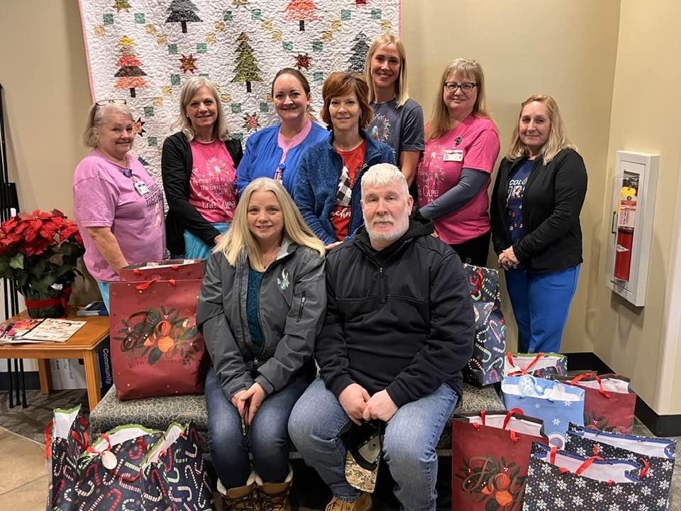 Photo submitted Pictured, left to right, back, Denise Stromdahl, Sue Blanco, Tammi Bagurney, Kathy Kesterholt, Christa Stamm, Pam Litzinger and Jeanne Pierson of the Warren General Hospital with, front, Paula and Jim Cousins of Paula’s Promise.