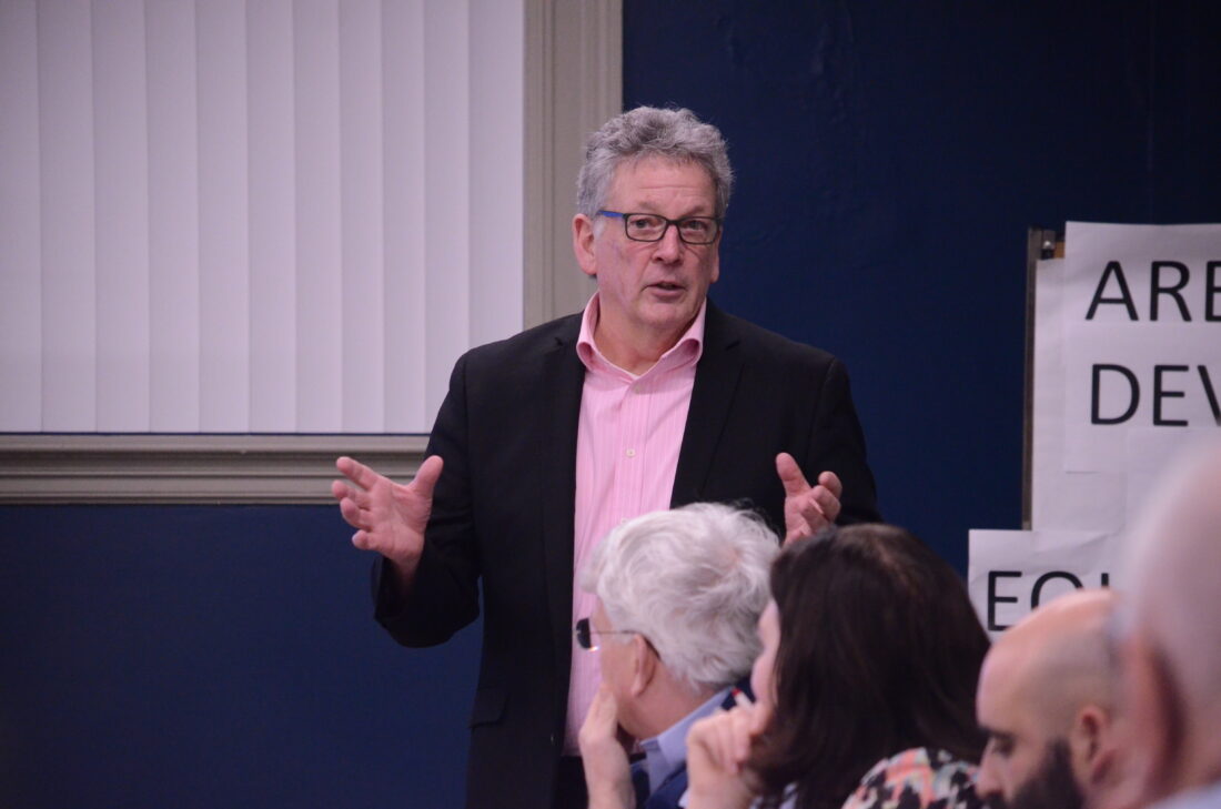 Times Observer photos by Josh Cotton Warren County Chamber of Business and Industry President/CEO Jim Decker speaks during a joint session with city and county officials on Tuesday night at the Northern Pennsylvania Regional College headquarters. The session aimed to answer questions that elected officials have over the Warren Worx initiative.