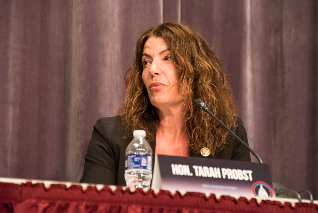 Rep. Tarah Probst, D-Stoudsberg, is pictured during a 2023 committee hearing. Probst wants to give homeowners more notice of tax delinquencies.