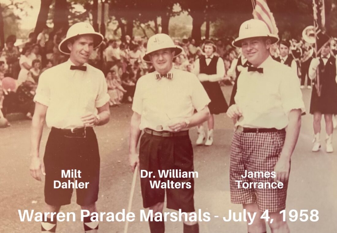 - Mr. Milt Dahler, Dr. William Walters, and Mr. Jim Torrance as the Grand Marshals for the 1958 Warren Fourth of July parade.