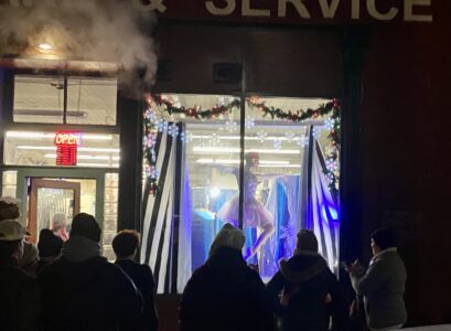 Local businesses contributed to the event by offering complimentary hot cocoa, cider, eggnog, and cookies to help attendees warm up on the cold winter night. The event featured live performances, including music by The Misfits bluegrass band and holiday-themed dances by Taylor Made Dance and Theatre, performed in storefront windows.