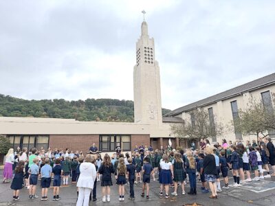 This photo, taken by Mollie VanOrd, shows St. Joseph’s Catholic School participating in Pinwheels for Peace.