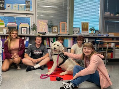 DeeDee offers support and focus to the students in Olivia Zawacki’s math class. “She brings a PAWSitive vibe” said one of the students.