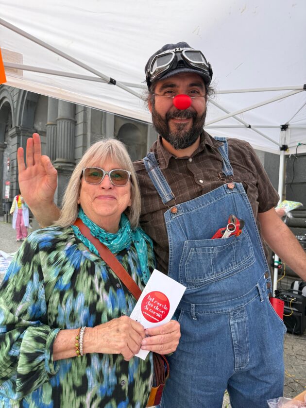 Pat Evans is pictured in Orvieto, Italy, at a clowns for children’s charities event in May 2025.