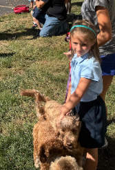 First grade student, Lucy Bussoletti with her golden doodles.