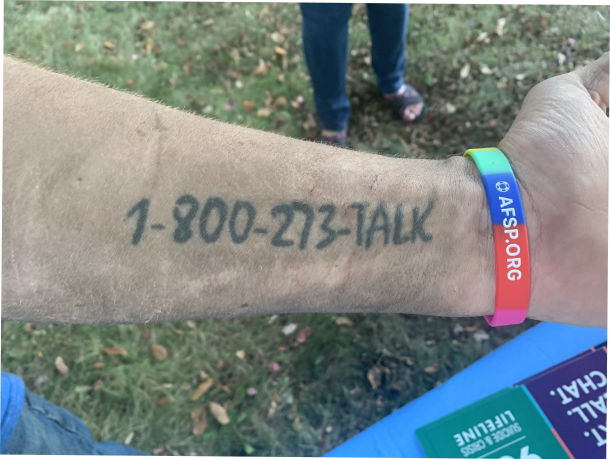 A fellow walker shared his tattoo. This 800 number is the same as the 988 Lifeline which is available via text 24/7/365. All conversations are free and confidential.