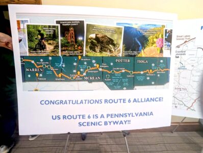 “To be considered for byway designation, a candidate roadway must possess at least one of six ‘intrinsic qualities’ – historic, cultural, natural, archaeological, recreational, or scenic,” Glotz said. “All six “Intrinsic Qualities” exist along designated Route 6. This particular byway includes four counties; Tioga, Potter, McKean, and Warren. The byway spans 211 miles and passes through 34 municipalities, each having previously adopted resolutions in support of the designation. That in itself is a huge testament to the local belief in the byway concept.”