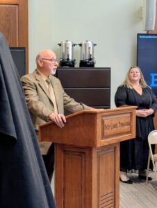 Dan Glotz, a Warren County Commissioner and president of the Route 6 Alliance board, speaks during the recent opening of the new Route 6 Scenic Byway that includes Warren County.