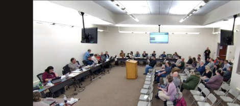 Photo via screenshot Gary Weber, Warren County School District superintendent, is pictured commending Cody Brown, Savanna Cochran, and Mary Passinger for their time and dedication serving on the school board.
