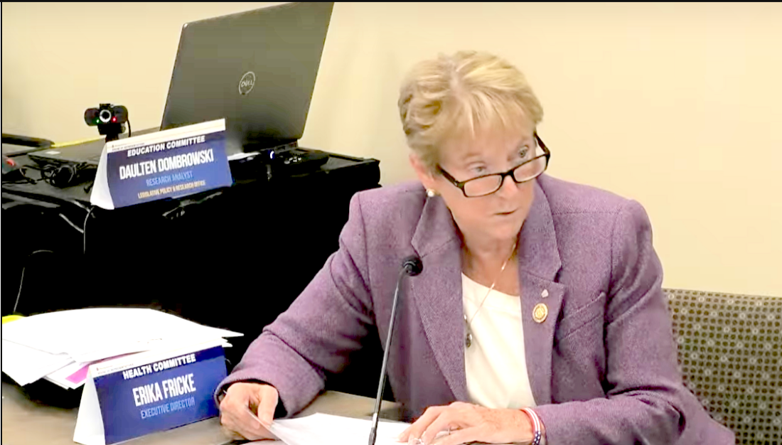 House Rep. Kathy Rapp, R-Warren, speaks during a recent joint committee hearing on cell phones in schools.