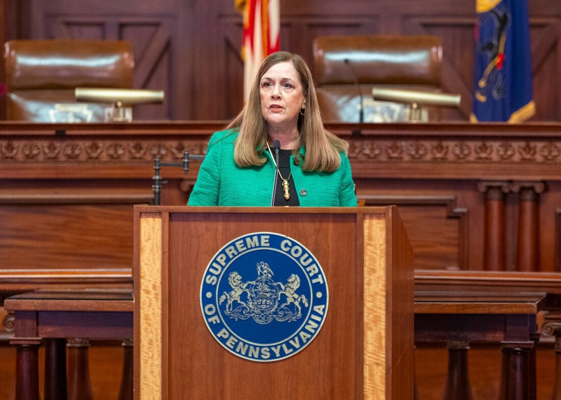 Sen. Lisa Baker, R-Dallas, is pictured speaking during a public event in Harrisburg earlier this year.