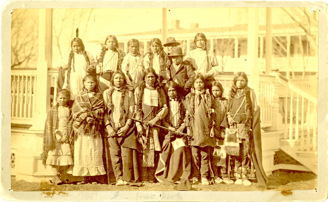 AP Photo This photo provided by the Carlisle Indian School Digital Resource Center shows nine male students and six female students posed on the steps of the bandstand on the Carlisle Indian Industrial School grounds in Carlisle, Pa., in March 1891, wearing the clothing they arrived in.