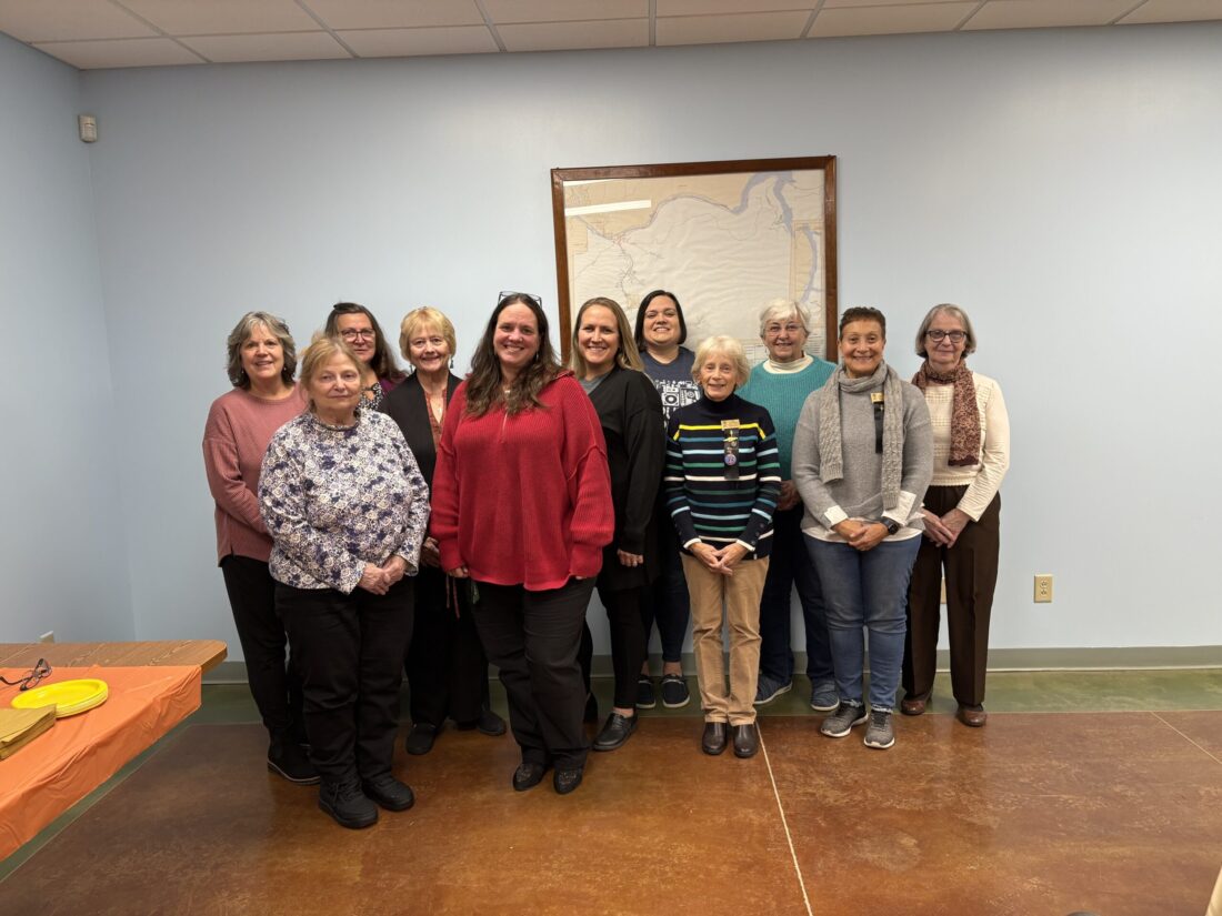 Pictured in the front row are Janet Peterson, Jennifer Madigan, Executive Director of the Kinzua Area Discovery Center, Mary Belleau, and Barb McAvoy. In back are Mary Pat Shattuck, Marcia Madigan, Sue Yovich, Maria Palmieri, April Tharp, Ruth Olson, and Alexis McAvoy.