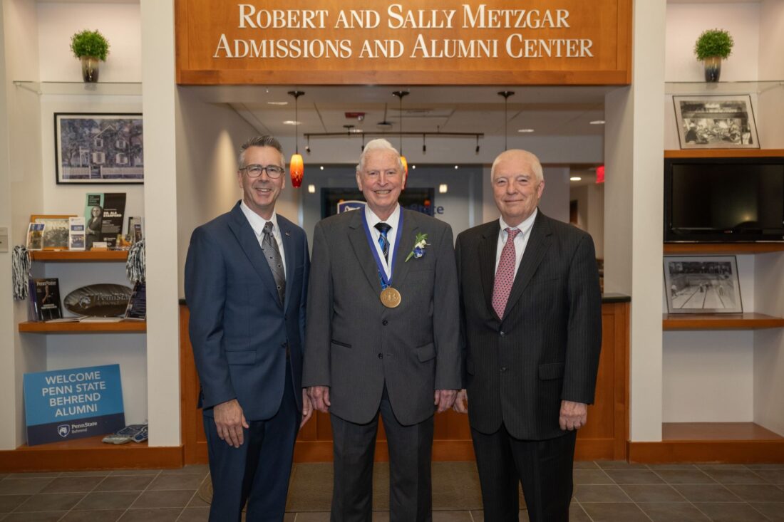 ERIE – Penn State Behrend has presented the Behrend Medallion, the college’s highest award, to alumnus Robert D. Metzgar, the former president of Warren-based North Penn Pipe and Supply and a longtime supporter of Penn State and its students.