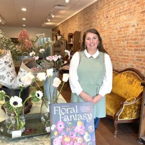 - Pictured is Bough and Bend Owner Kate Fenstermacher with flowers in her store.