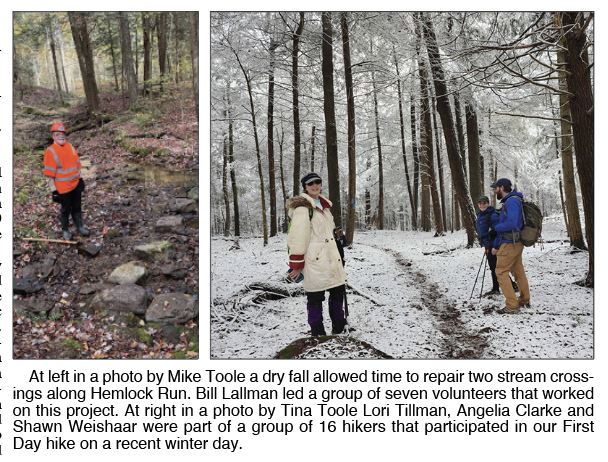 In 2026, the chapter will continue to work with the local and regional U.S. Forest Service personnel to design and construct two long span bridges, over 35′ in length, in the Tracy Ridge area. These bridges will provide safe crossing of two major streams, especially in times of high-water flow and winter conditions. Drainage improvements and rerouting of the trail to improve the trail will continue to be major local points. Bridge repair work including replacements will also be a priority. Outreach will continue with monthly hikes along with creative member events to welcome people to the trail and the chapter. Ongoing training for volunteers to maintain their chainsaw and first aid certifications will take place.