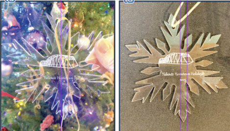 Tidoute Community Charter School also makes a borough ornament on acrylic, lasering snowflakes with a lasered print of the Tidioute Bridge. They’ve made these ornaments for the past 4 years as well as cutting boards and other items.