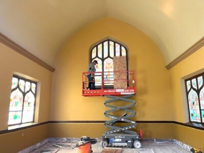 The majority of the project with its intricate work, artisanal in nature, has been completed within this past year. Contractors – all local – have been kind and generous, and have gone above and beyond with their amazing skill and work they have contributed. Key supporters have dedicated the stained-glass windows as a memorial to their loved ones. The team has brought back to life versions of the past, made brighter in order to restore the chapel to its original state.