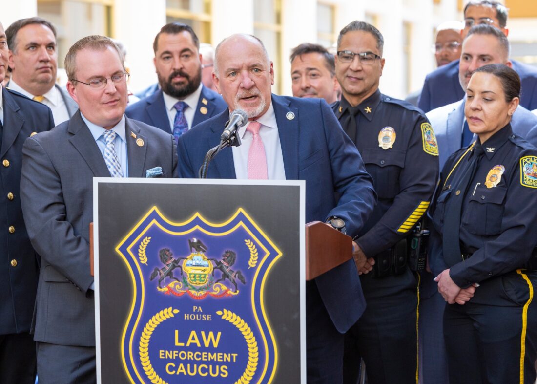Rep. Jim Rigby, R-Johnstown, is pictured at a news conference in 2025. Rigby and Rep. Kyle Mullins, D-Peckville, are proposing the creation of a fee on those convicted of child sex crimes to help increase funding to Child Advocacy Centers throughout the state.
