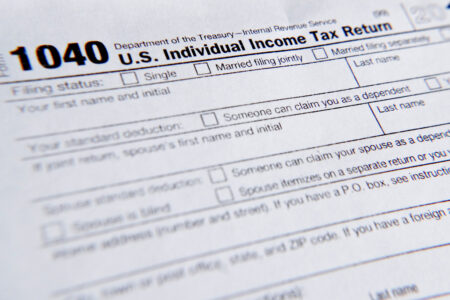 A 1040 tax form printed from the Internal Revenue Service is shown.
