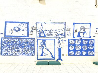 - St. Joseph Catholic School students are currently finishing their mural using blue tape as the only medium for artwork. Carefully and creatively placed on the walls of the school’s gym, the mural is available for viewing in time for the school’s open house this Sunday.