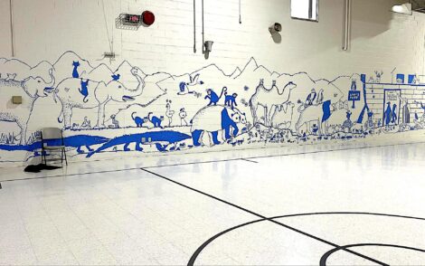 St. Joseph Catholic School students are currently finishing their mural using blue tape as the only medium for artwork. Carefully and creatively placed on the walls of the school’s gym, the mural is available for viewing in time for the school’s open house this Sunday.