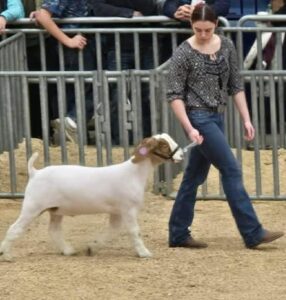 Shay Reilly, pictured, won fifth place in Junior Market Goat Light Heavyweight at the PA Farm Show.